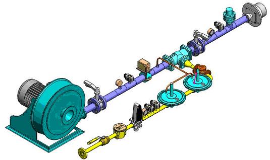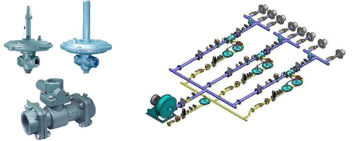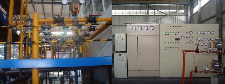铜杆连铸连轧生产线燃烧系统包括熔化炉,保温炉,流槽燃烧系统。早期国内铜杆连铸连轧生产线燃烧系主要引进国外技术,如美国南方线材公司、德国克虏伯公司等,他们的燃烧系统核心设备和技术主要采用Pyronics的燃烧设备和燃烧技术,核心设备有平衡比例阀BRR-300系列,混合器FMT系列,燃烧器FR系列和具有防回会功能的燃烧器Premixers系列等等。目前,我公司参照了美国南方线材公司、德国克虏伯公司和意大利设备等国外引进低氧铜杆的生产技术,同时,我们结合公司长期在燃烧行业的丰富的燃烧理论和实践经验开发出设计出铜杆连铸连轧生产线燃烧系统,系统结构不但与美国南方线材公司一样的原图制造、安装,更是在原有技术上的改进,其显著的特点是:燃烧安全环保,结构简单、生产效率高、能耗低、而且铜杆品质优良。