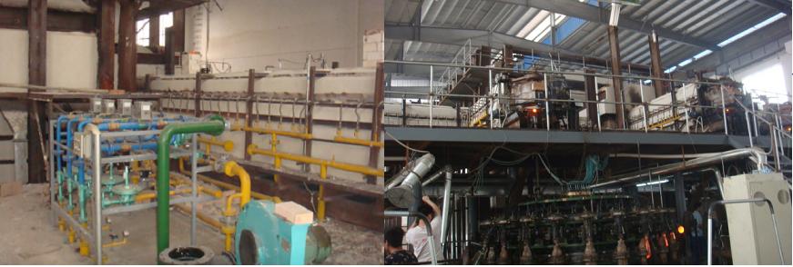 7、 生产连续性:电加热经常更换硅碳棒和自身故障较多,生产常常被中断,燃气加热设备本身故障点少,不需要更换部件,生产连续性高。